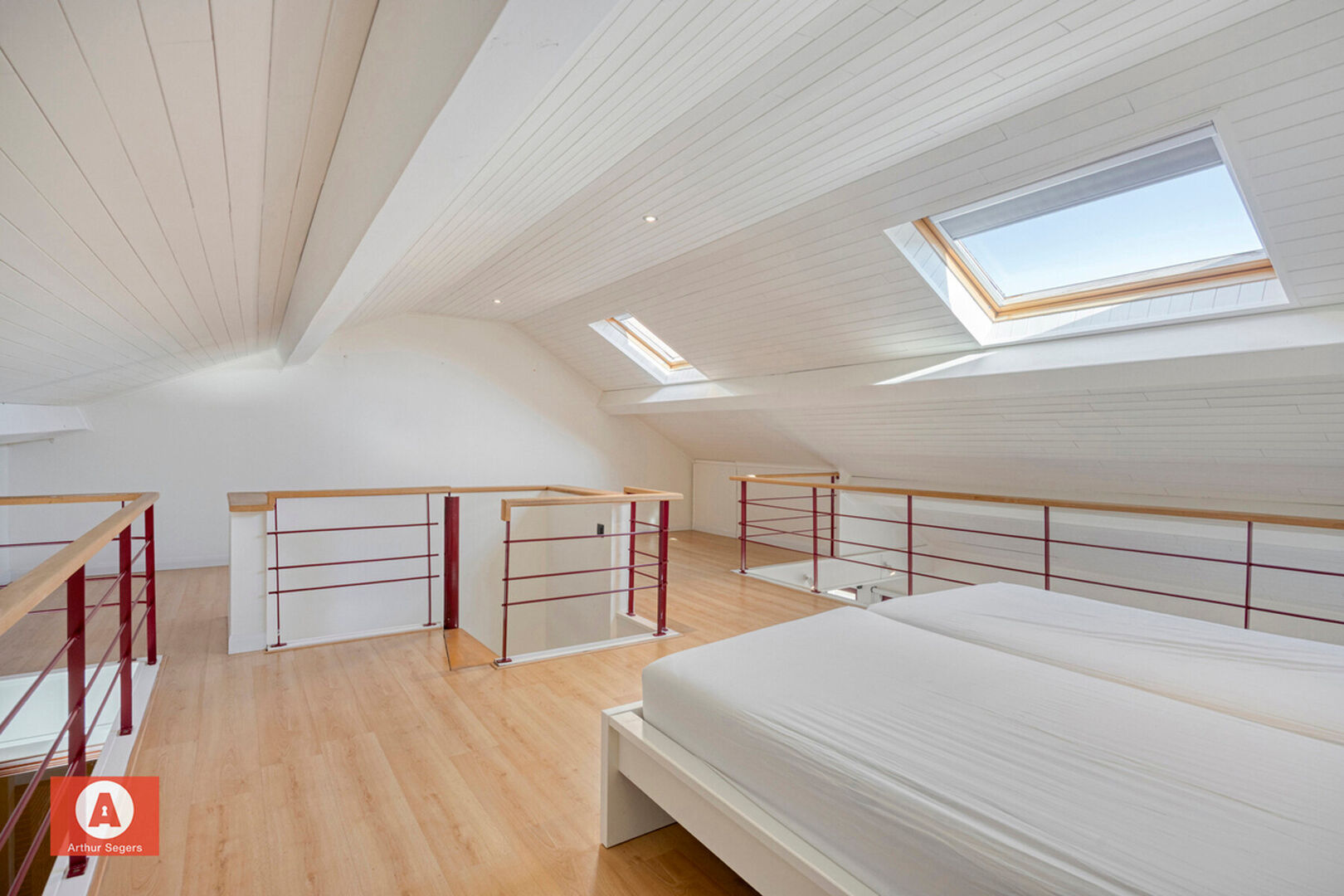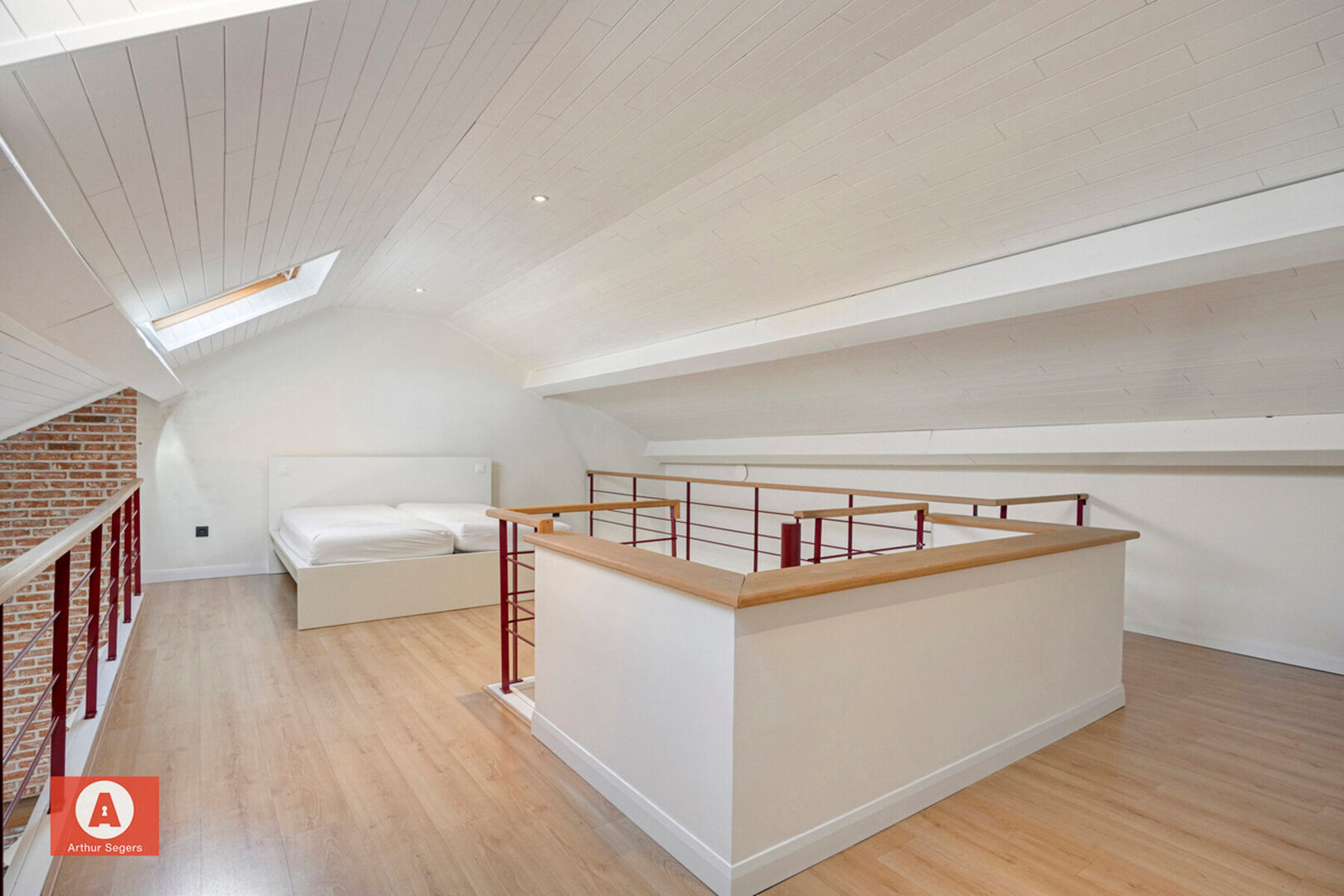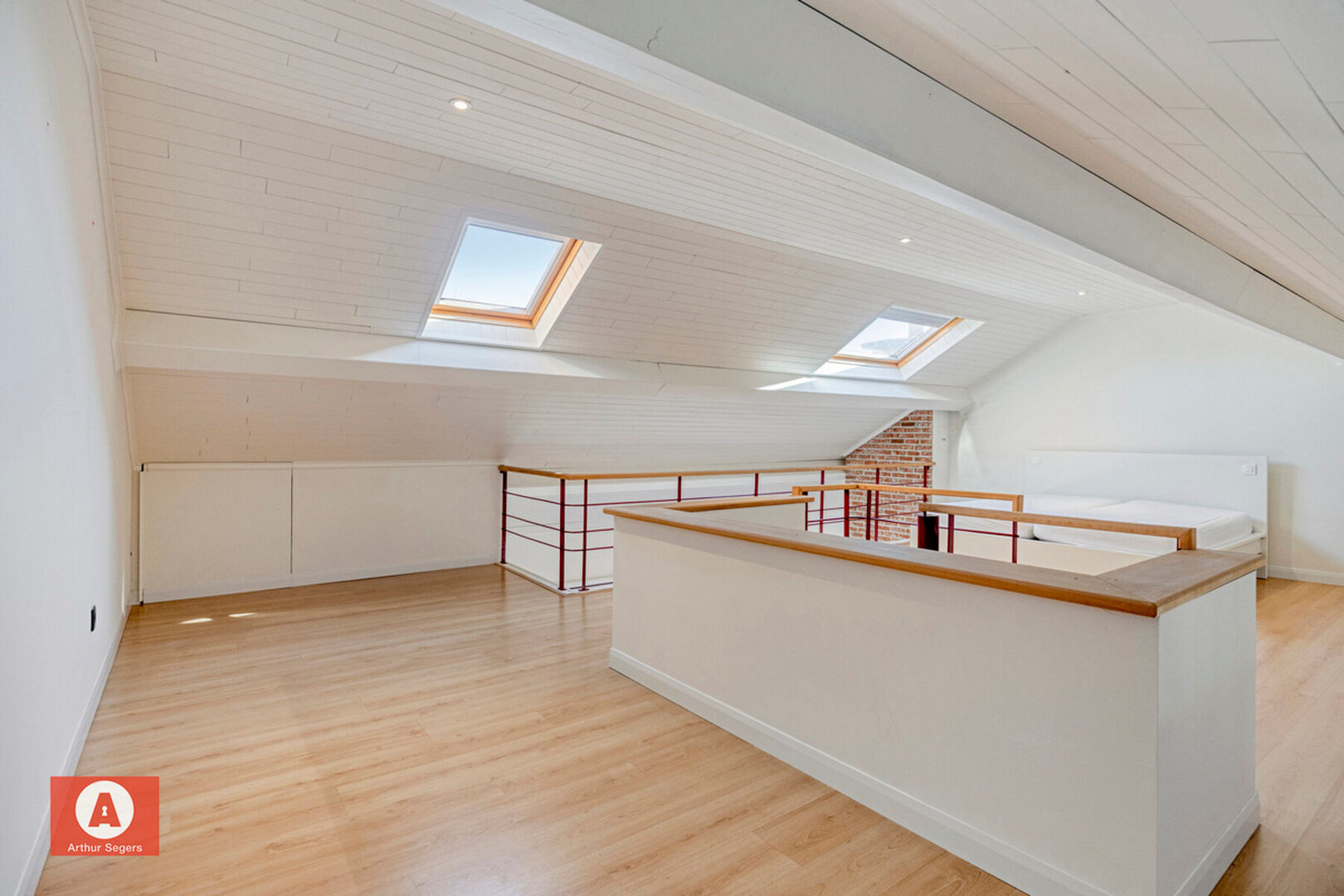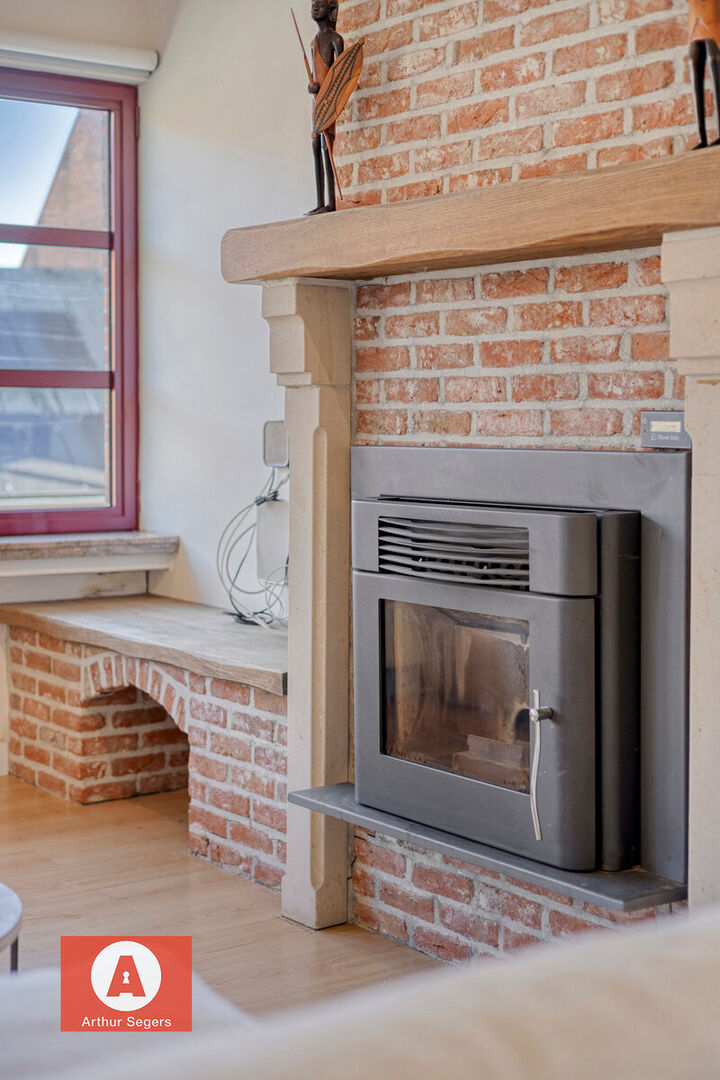 Het appartement beschikt over een privatieve inhomhal met toegang tot het meter-lokaal, inkomhal, open leefruimte (bestaande uit een volledig uitgeruste keuken met zitplaats en bureau ruimte), berging/wasplaats, de volledig vernieuwde badkamer en een afzonderlijk gasten-toilet. Het appartement beschikt verder over een uiterst gezellige mezzanine waar momenteel de slaapkamer is ingericht. Tijdens de wintermaanden kan U genieten van de extra gezellige pellet kachel.