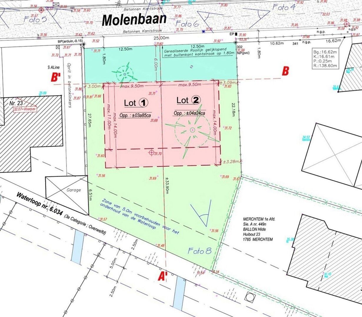Lot 1 (Half-open bebouwing): 3a 85ca, vraagprijs: 175.000,- EUR