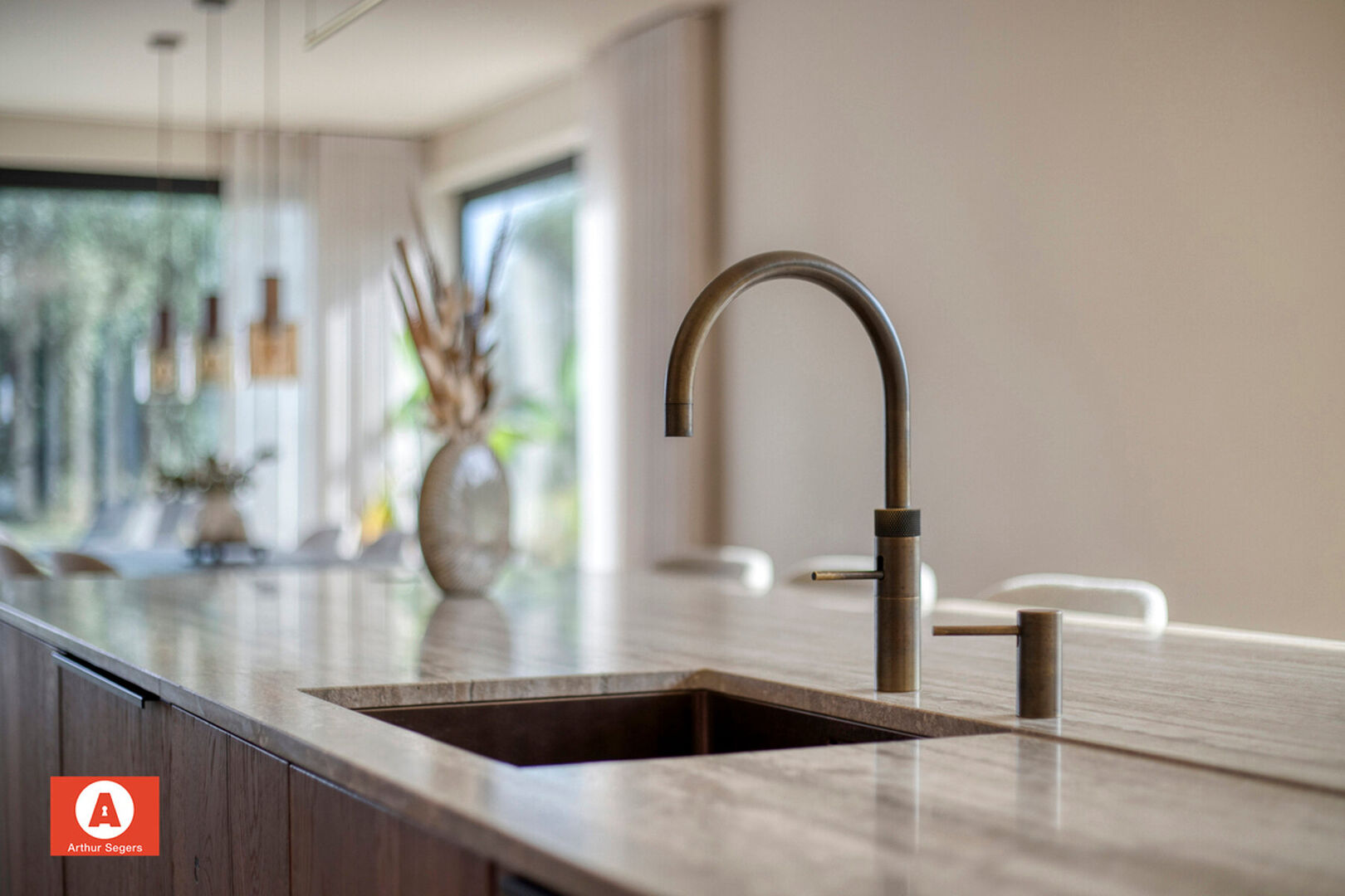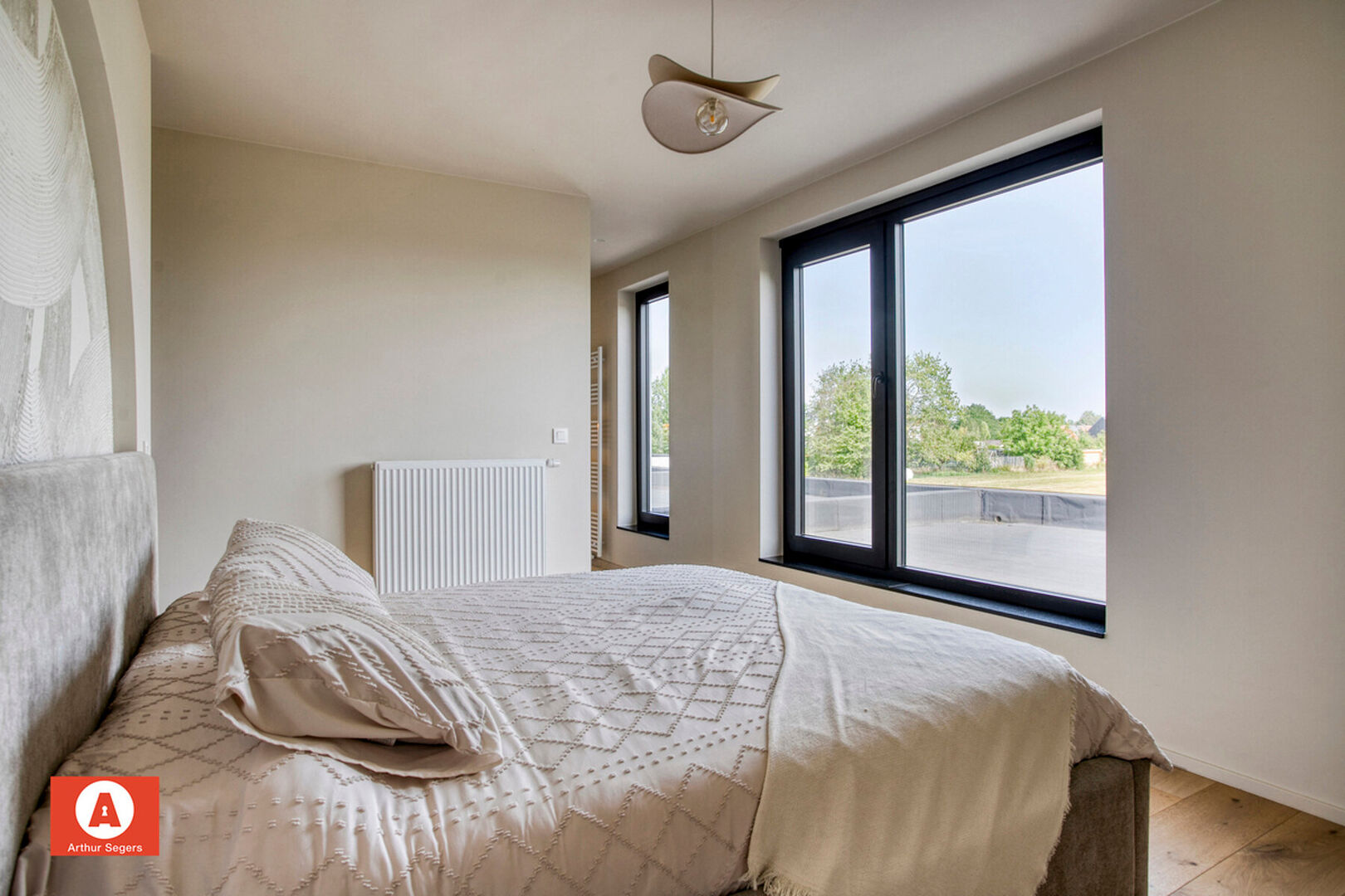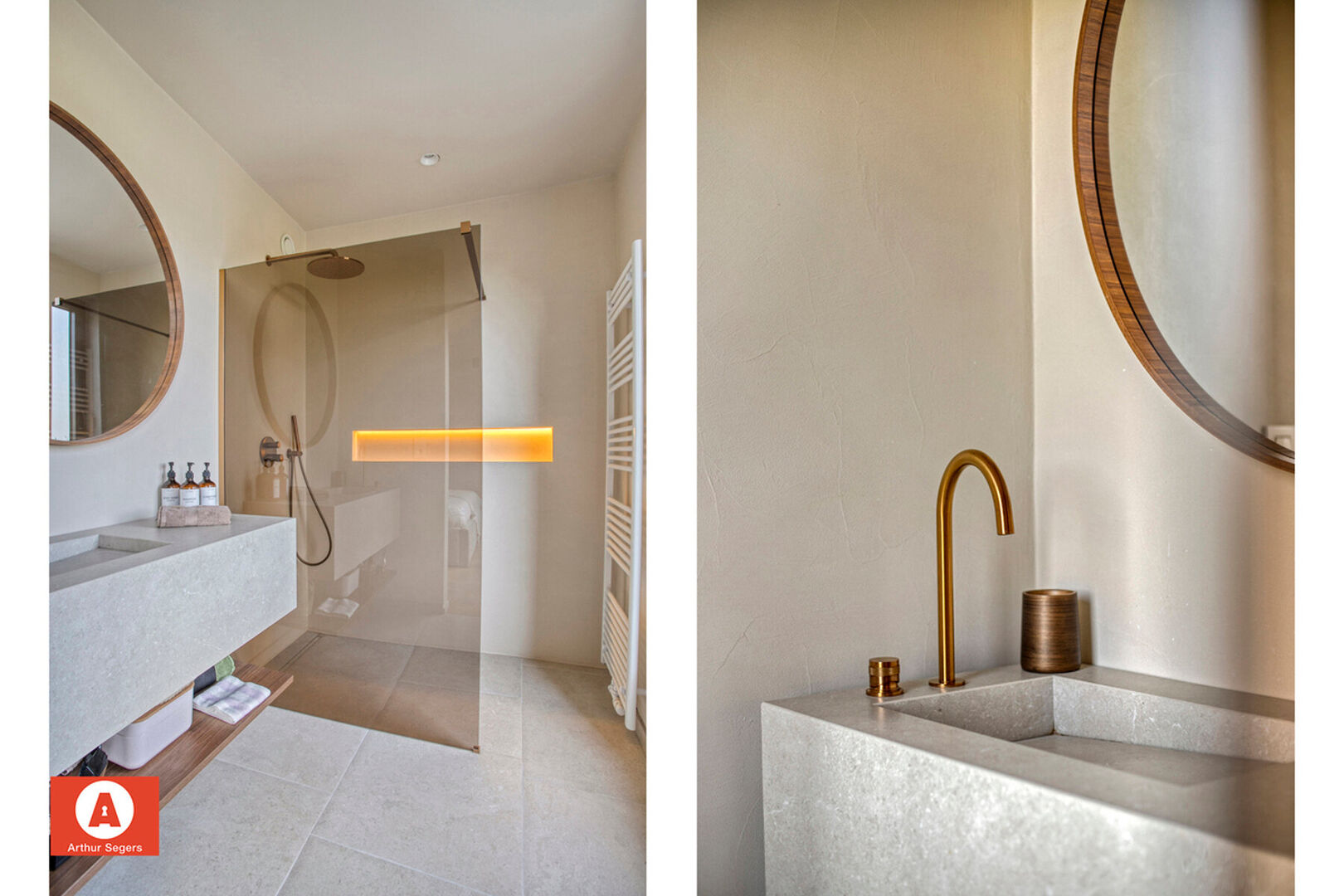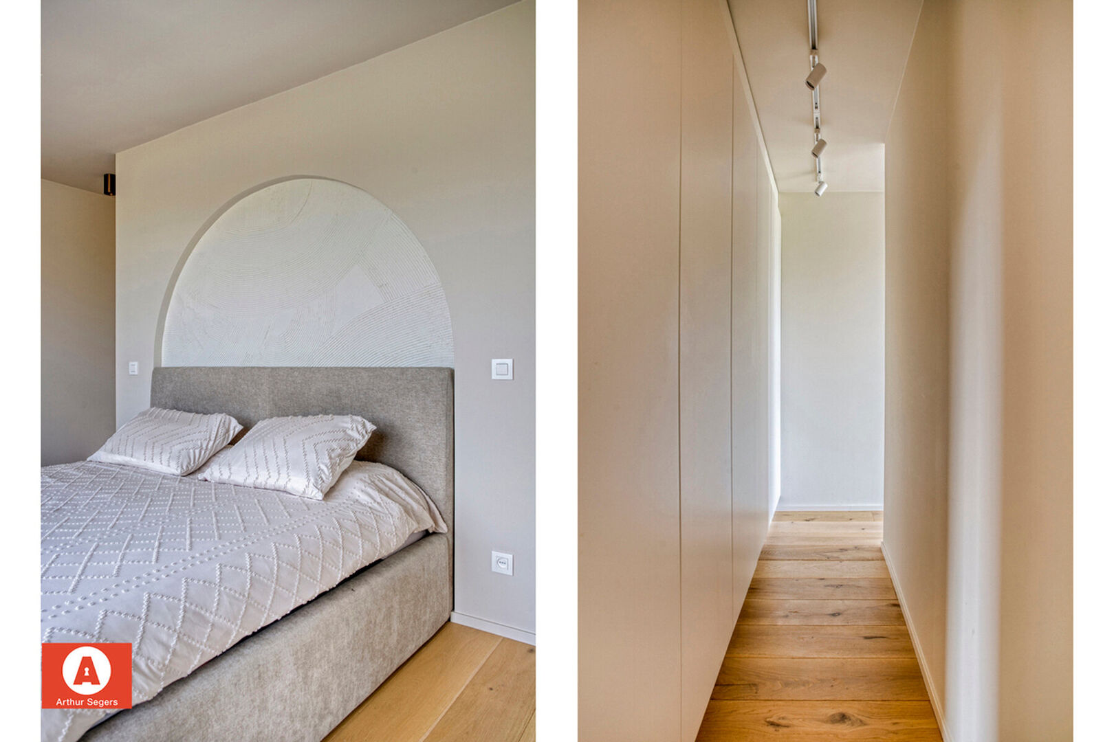 De woning telt 220 m² bewoonbare oppervlakte met 3 ruime slaapkamers, 2 luxueuze badkamers, een maatwerkkeuken in fineer en travertin en een verborgen pantry/bijkeuken via een ‘hidden door’. Daarnaast is er een polyvalente bureau- of zithoek en zijn er overal ingebouwde kasten die zorgen voor een strak en opgeruimd interieur.