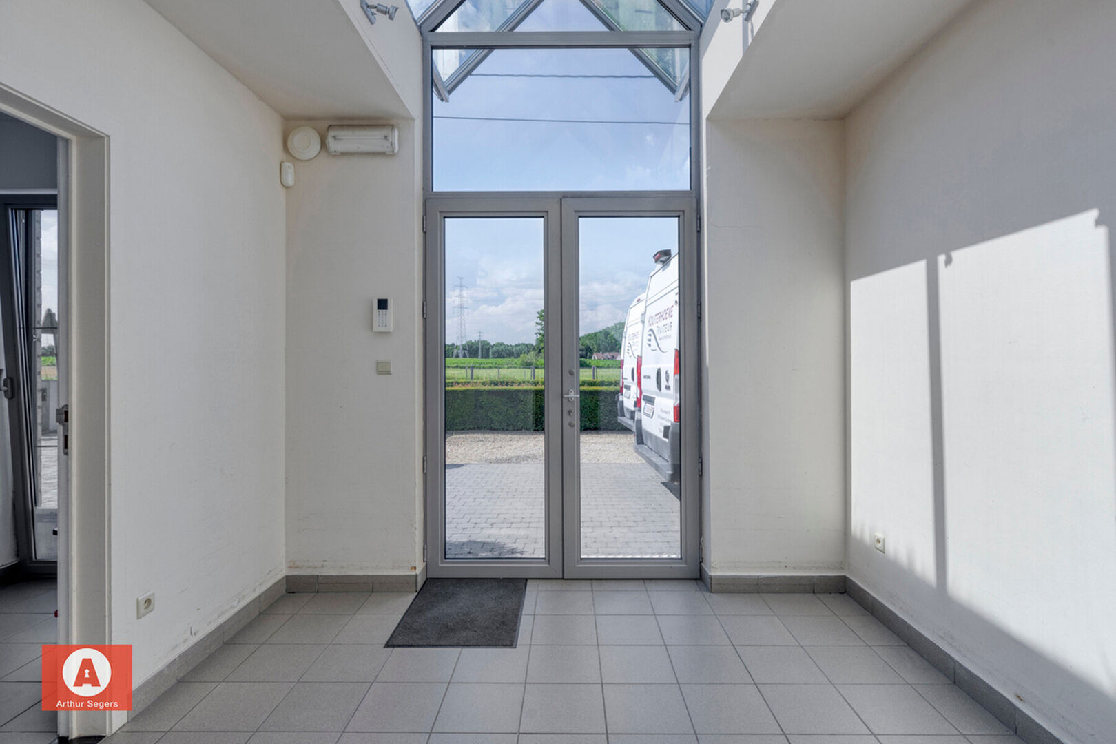 De werkplaats (ca. 100 m²) omvat inkomhal, bureau, atelier, berging, koelcel en toilet. Woning en werkruimte zijn intern verbonden. Enkel geschikt voor dienstverlenende activiteiten; functiewijziging vooraf voorleggen aan dienst Stedenbouw van de gemeente Londerzeel. Kantoor en zorgwonen behoren ook tot de mogelijkheden.