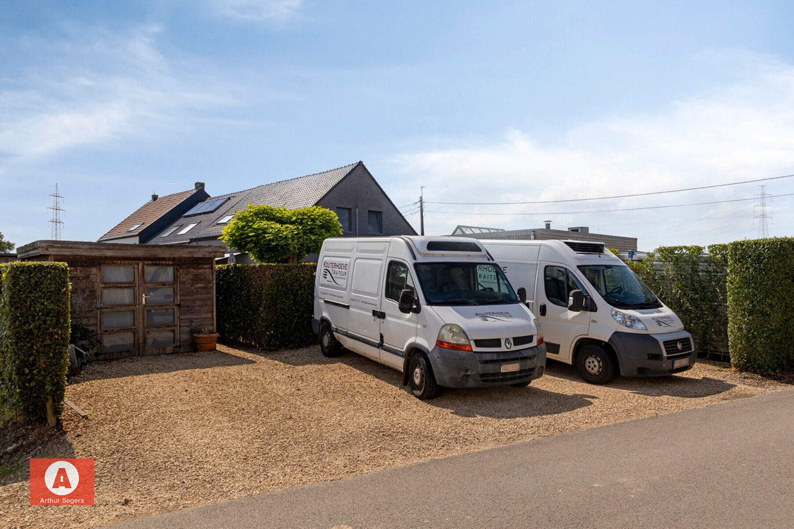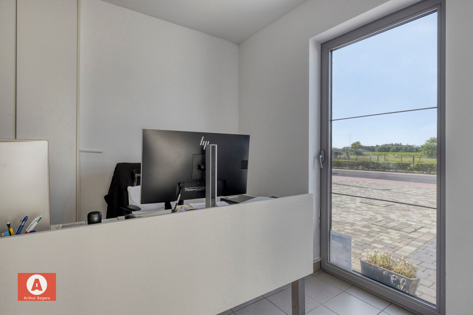 De werkplaats (ca. 100 m²) omvat inkomhal, bureau, atelier, berging, koelcel en toilet. Woning en werkruimte zijn intern verbonden. Enkel geschikt voor dienstverlenende activiteiten; functiewijziging vooraf voorleggen aan dienst Stedenbouw van de gemeente Londerzeel. Kantoor en zorgwonen behoren ook tot de mogelijkheden.
