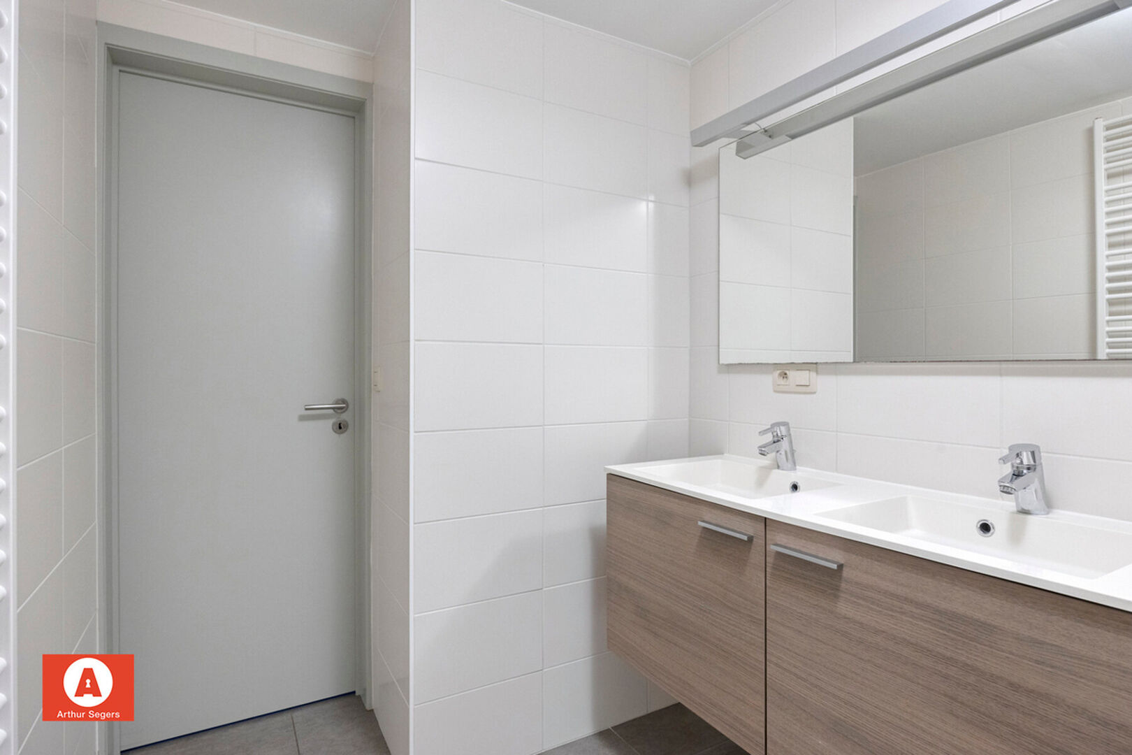 Gelijkvloers appartement (101 m²) met tuin en privatieve parkeerplaats achteraan. Zeer energiezuinig (EPC B – 120 kWh/m²/jaar) en volledig instapklaar (recent herschilderd).