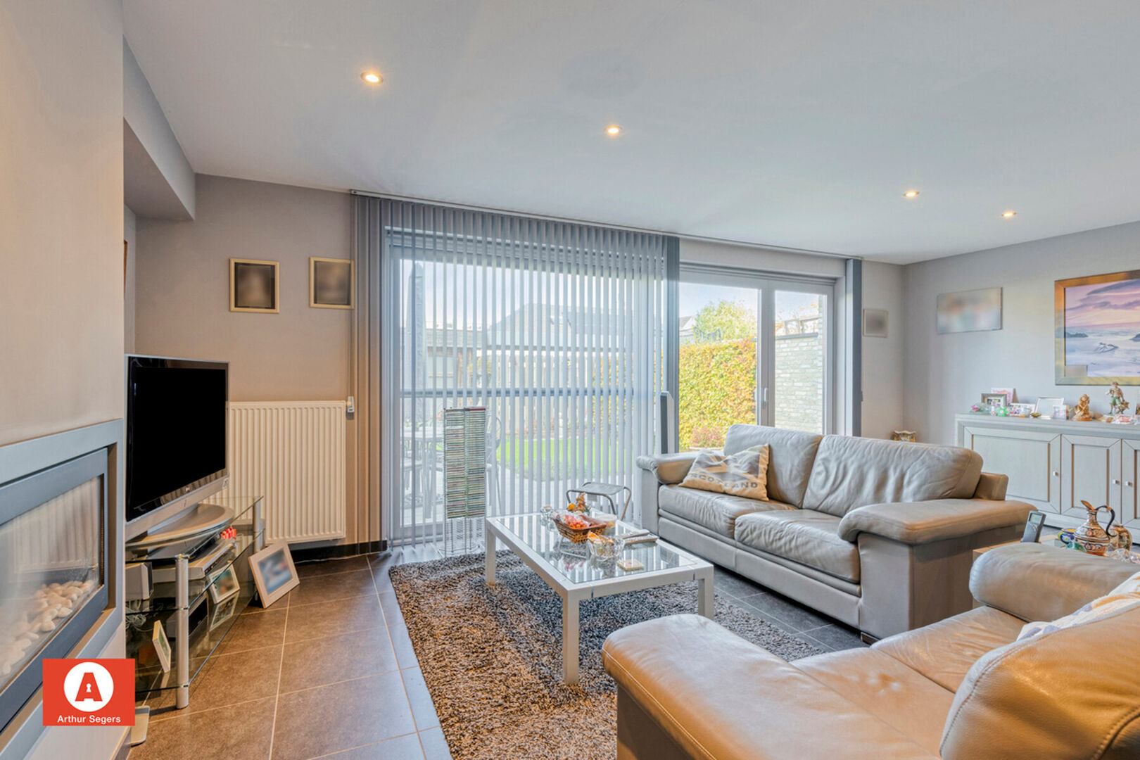 De grote raampartij achteraan zorgt voor veel lichtinval en een aangenaam wooncomfort. Van de zonnige hoogdagen geniet U van het volledig aangelegde terras met tuin.