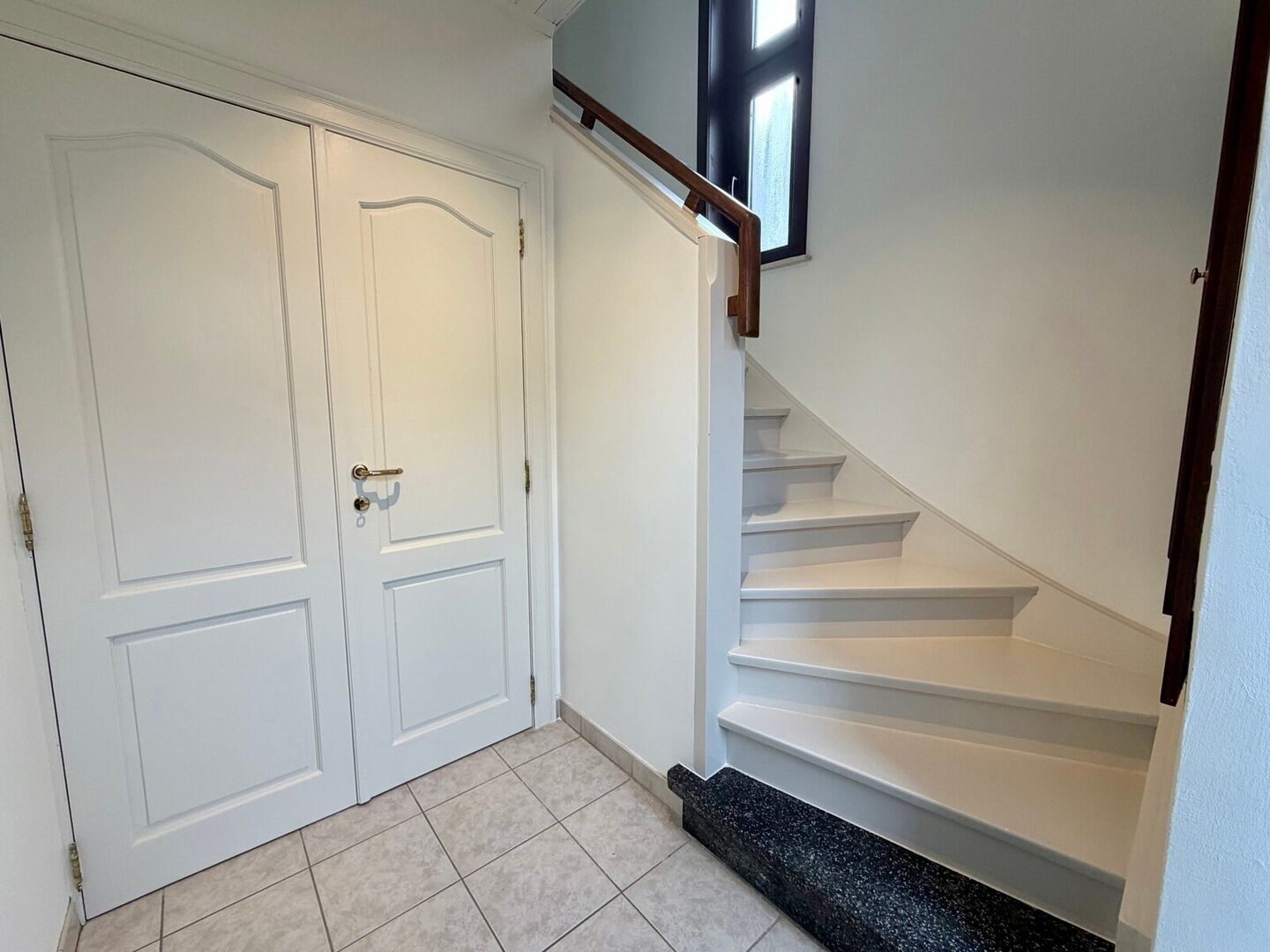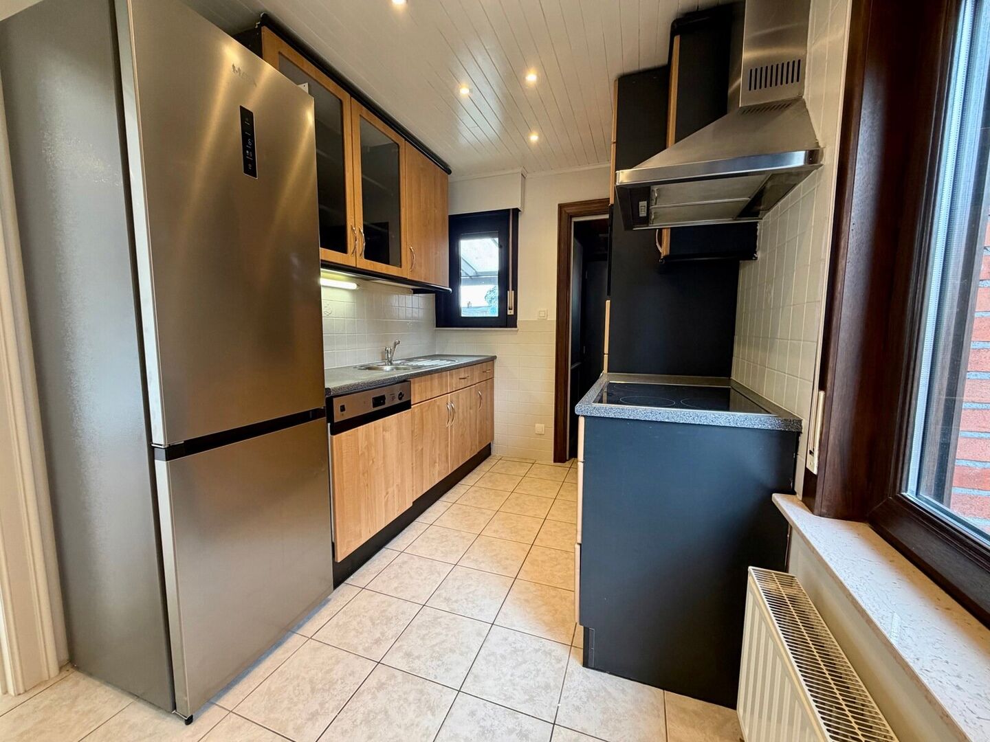 Bij binnenkomst via de inkomhal vindt u een vestiairekast. De lichtrijke leefruimte vormt het hart van de woning en grenst aan een afzonderlijke keuken, uitgerust met een recent nieuwe koelkast met diepvries en een micro-combi stoomoven. Verder beschikt de woning over een praktische berging en een kelder.