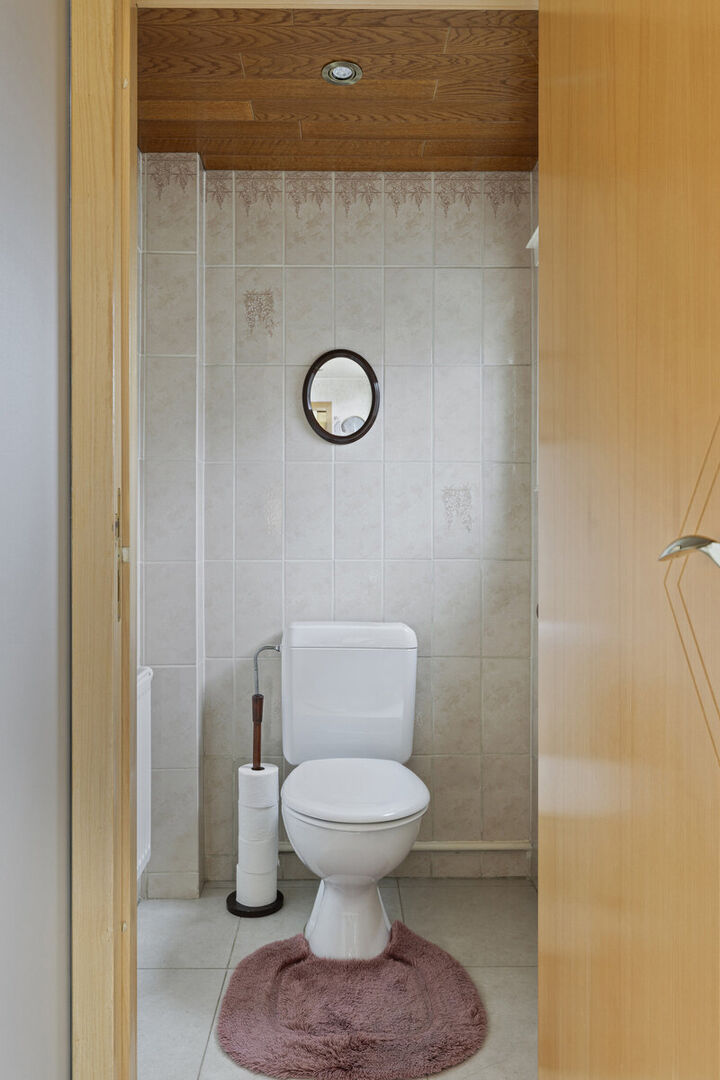 Extra bergkelder voorhanden. Op de eerste verdieping zijn er 3 slaapkamers en de uitgeruste badkamer terug te vinden.