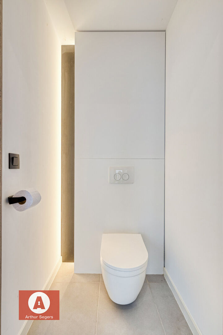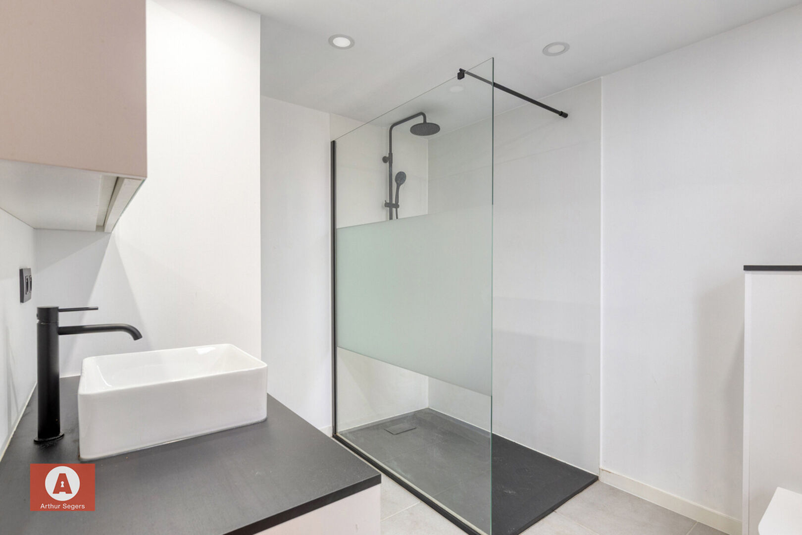 Verder heeft deze woning op de eerste verdieping 1 volwaardige slaapkamer en een volledig uitgeruste badkamer met inloop-douche, lavabo en tweede toilet.