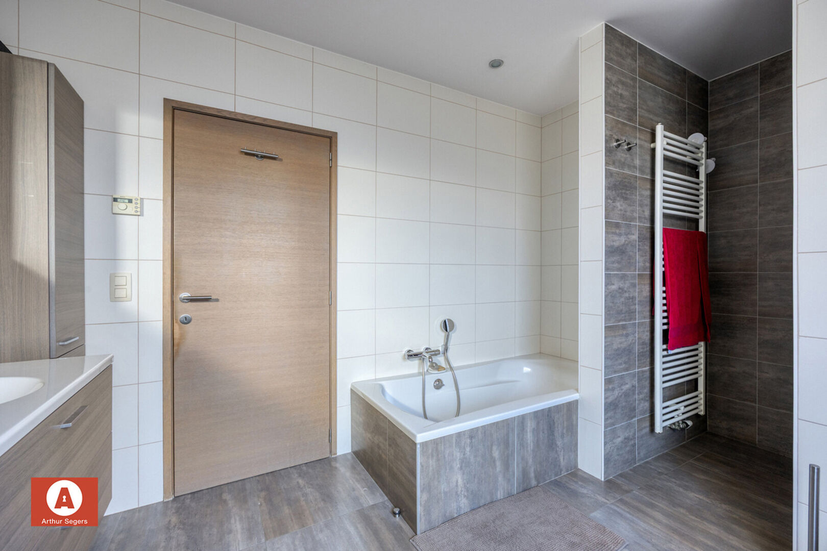 Via de nacht-hal zijn er verder nog 2 volwaardige slaapkamers (waarvan 1 beschikt over een inloop-dressing), uitgeruste badkamer en wasruimte terug te vinden.