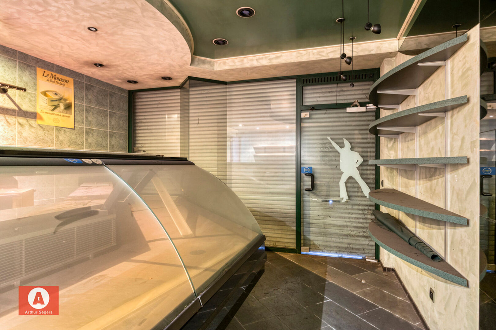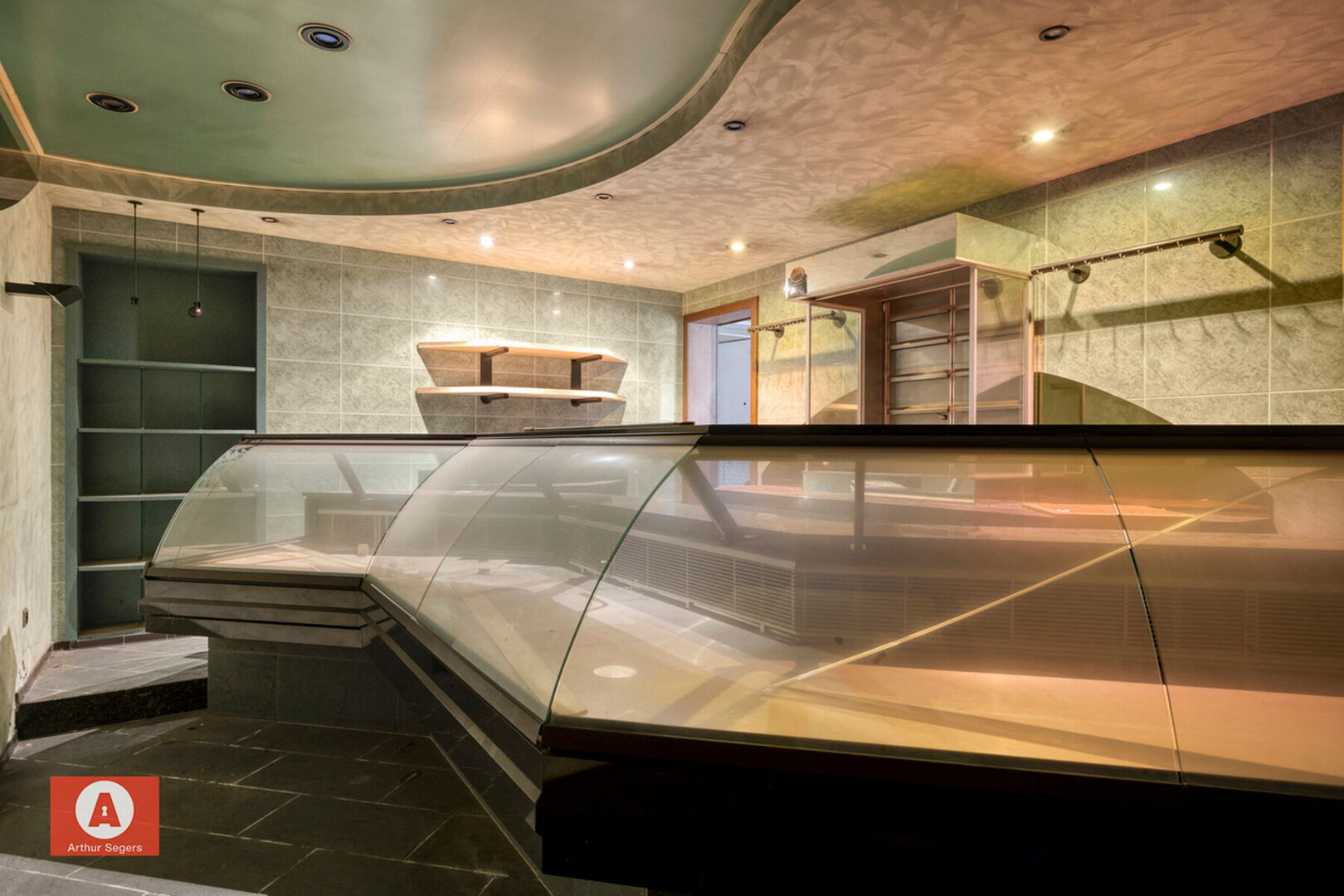 De indeling van het pand omvat een Handelshuis met woonst, op het gelijkvloers, bestaande uit een winkel (voormalige beenhouwerij-inrichting met koelcel), auto-parkeerplaats (inpandige garage), wasplaats, berging/atelier, cv-ruimte, keuken en eetplaats. Bergkelder voorhanden.