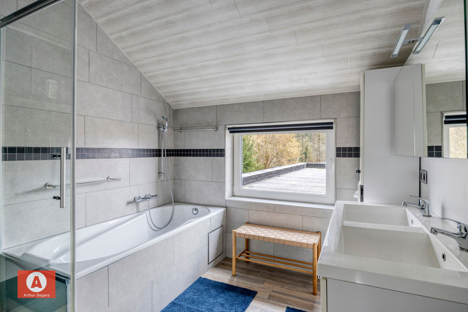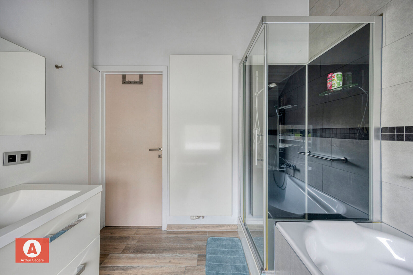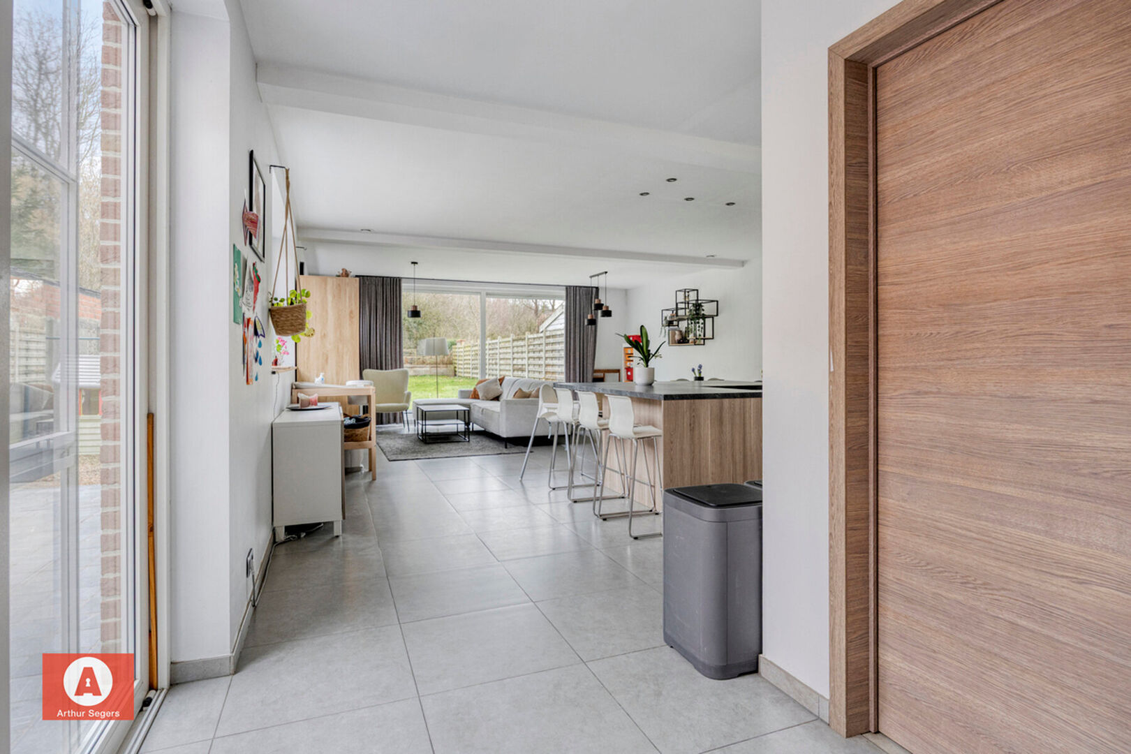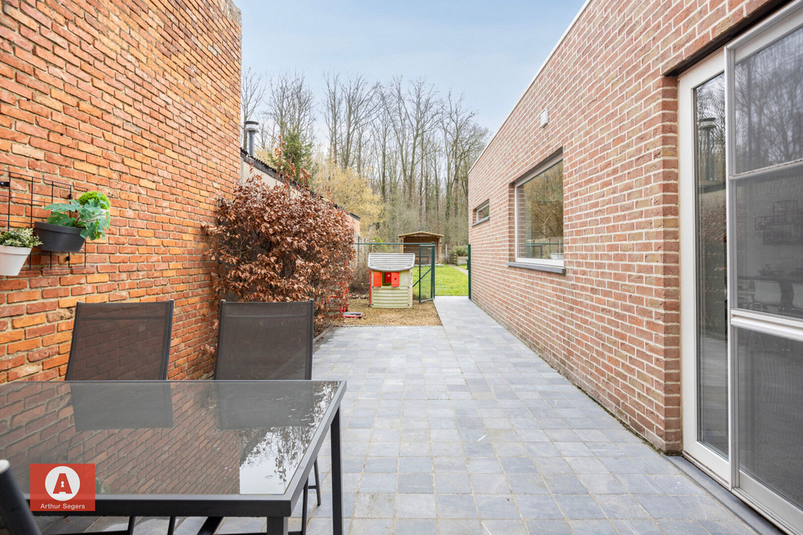 Energiezuinige woning (EPC = B) met mogelijks 4 slaapkamers, gelegen op een zuidoostgericht perceel van 4a 57ca met het prachtige Buggenhoutbos letterlijk in de achtertuin. Een unieke combinatie van ruimte, comfort en natuur. Deze woning beschikt over een bruikbare vloeroppervlakte van maar liefst 242 m² en is bijzonder energiezuinig. Bij de EPC-score werd geen rekening gehouden met de aanwezige zonnepanelen (3.710 Wp) en het ventilatiesysteem D, wat het energiezuinige karakter extra benadrukt. Verder is er een inpandige garage en parkeermogelijkheid voor de woning aanwezig. De indeling omvat een inkomhal met gastentoilet, een ruim bureau of extra slaapkamer en een riante, lichtrijke leefruimte met open keuken en eiland. Op het gelijkvloers bevinden zich tevens een bijkomende slaapkamer met inloopdouche, een ingemaakte wasplaats en de garage. Op de eerste verdieping vindt u nog 2 volwaardige slaapkamers, een badkamer en een afzonderlijk toilet. Daarnaast is er nog een praktische stockagezolder aanwezig. De zonovergoten tuin met terras, tuinhuis met overkapping en het directe zicht op het Buggenhoutbos maken dit geheel compleet. Bijkomende troeven: gascondensatieketel (vloerverwarming beneden), PVC-raamprofielen met hoogrendementsglas en rolluiken, conforme elektriciteit. De woning is getroffen door een rooilijnplan van 1968. BEZOEKDAG OP AANVRAAG. Attesten via www.arthur.be. GRATIS SCHATTING of meer informatie? Contacteer IMMO ARTHUR SEGERS via 052/46.00.00 of info@arthur.be.