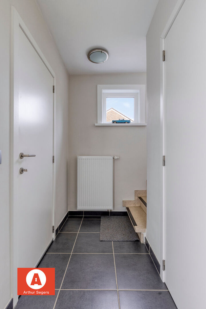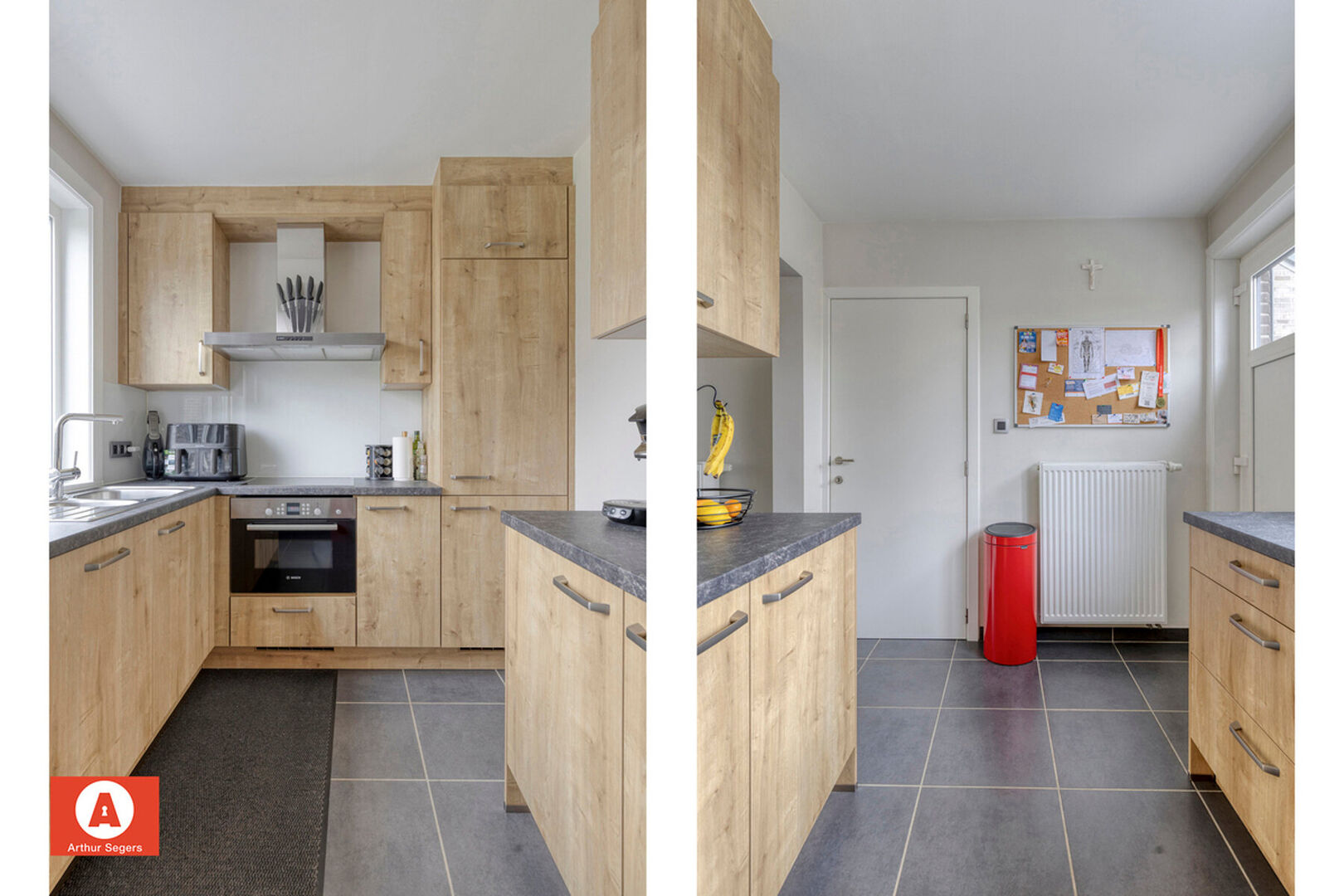 De indeling is als volgt: Gelijkvloers: inkomhal, leefruimte (bestaande uit: zit- en eethoek) met aansluitend de volledig uitgeruste keuken, berging 1, berging 2 (stookplaats) en het gasten-toilet. Op de eerste verdieping zijn er 3 volwaardige slaapkamers (waarvan 1 is ingericht als dressing) en de volledig uitgeruste badkamer (inloop-douche, dubbele lavabo, toilet) terug te vinden. Ruime bergzolder voorhanden. Uw rollend materieel kan u plaatsen in de inpandige garage (die ook vanuit de woning toegankelijk is) en die verder dienst doet als extra berging/wasplaats. Buiten vervolledigt de oprit voor 3 wagens en de volledig her-aangelegde voor- en achtertuin met 2de terras het geheel.