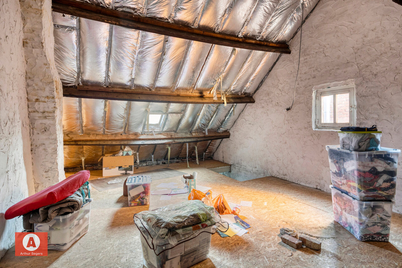 Op het gelijkvloers bevinden zich de inkomhal, een lichtrijke leefruimte, de keuken, een berging, de badkamer en een apart toilet. Op de eerste verdieping vindt u twee ruime slaapkamers. De zolder, bereikbaar via een vaste trap vanuit één van de slaapkamers, biedt bovendien de mogelijkheid om een derde slaapkamer of hobbyruimte te creëren.