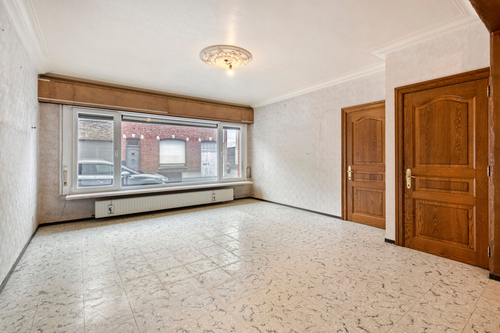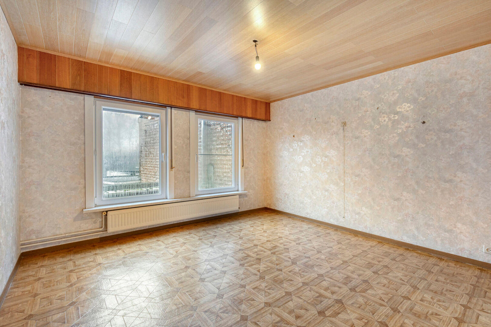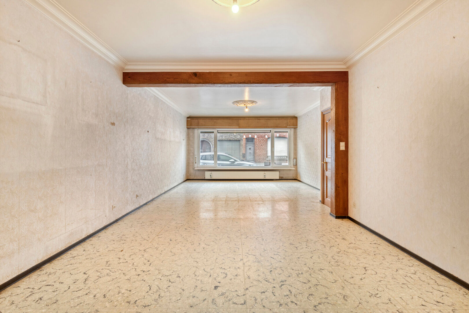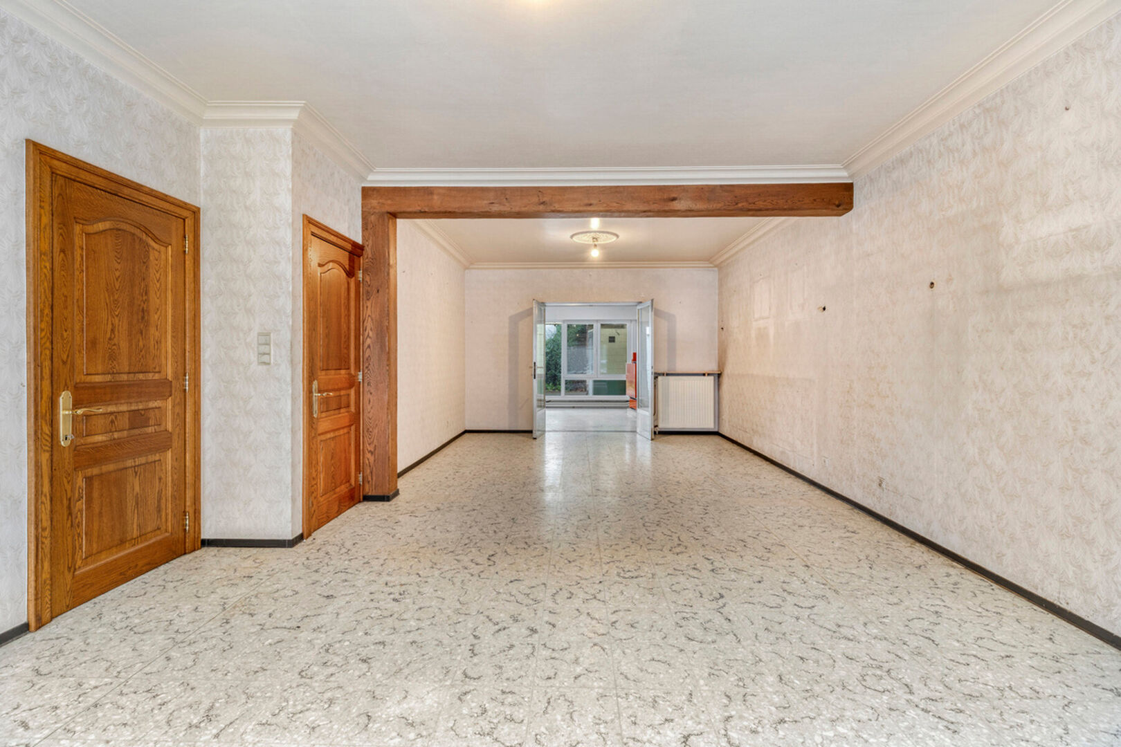 In de Mechelseweg, op 100 meter van de Vaart en op wandelafstand van het centrum van Kapelle-op-den-Bos, bevindt zich deze ruime en solide halfopen bebouwing met bijzonder veel potentieel. De woning, gebouwd in 1963, staat op een perceel van 3a 60ca en biedt een royale bewoonbare oppervlakte van 250 m². De betonnen gewelven verzekeren een uitstekende structurele basis voor renovatie. De huidige indeling omvat een inkomhal, een lichtrijke leefruimte en een afzonderlijke eetplaats, beide met toegang tot de keuken en veranda. Daarnaast zijn er een toilet en douche op het gelijkvloers. Op de eerste verdieping bevinden zich twee zeer ruime slaapkamers en een derde kamer met berging/dressing die doorloopt naar de badkamer. Een vaste trap leidt naar de grote zolder, perfect in te richten als extra kamers of bergruimte. De woning beschikt tevens over een droge kelder.