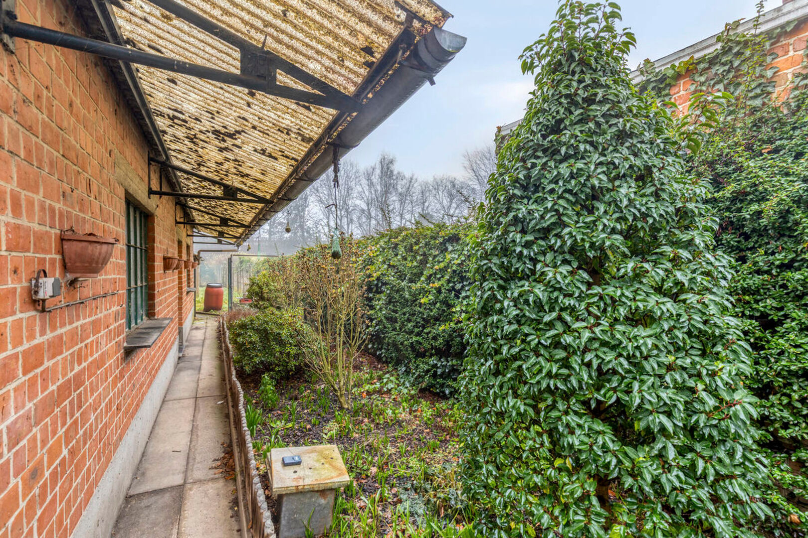 Een belangrijke troef is het achterliggende atelier van maar liefst 65 m², ideaal als hobbyruimte of bijkomende stockage. Het atelier en de onderhoudsvriendelijke zuid-gerichte tuin zijn bereikbaar via een uitweg van 1,9 m breed, ideaal voor fietsen en bromfietsen.